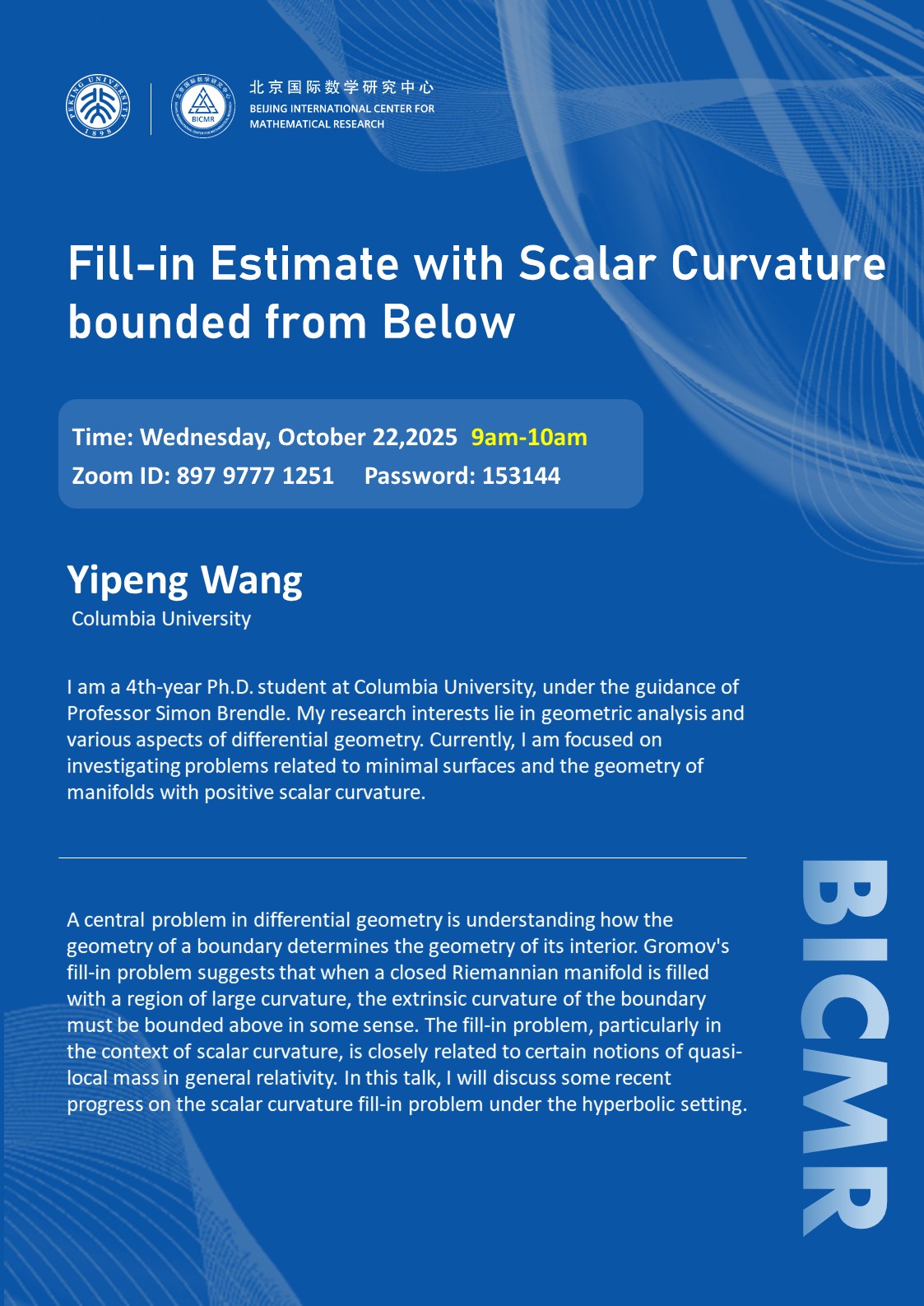 I am a 4th-year Ph.D. student at Columbia University, under the guidance of Professor Simon Brendle. My research interests lie in geometric analysis and various aspects of differential geometry. Currently, I am focused on investigating problems related to minimal surfaces and the geometry of manifolds with positive scalar curvature.